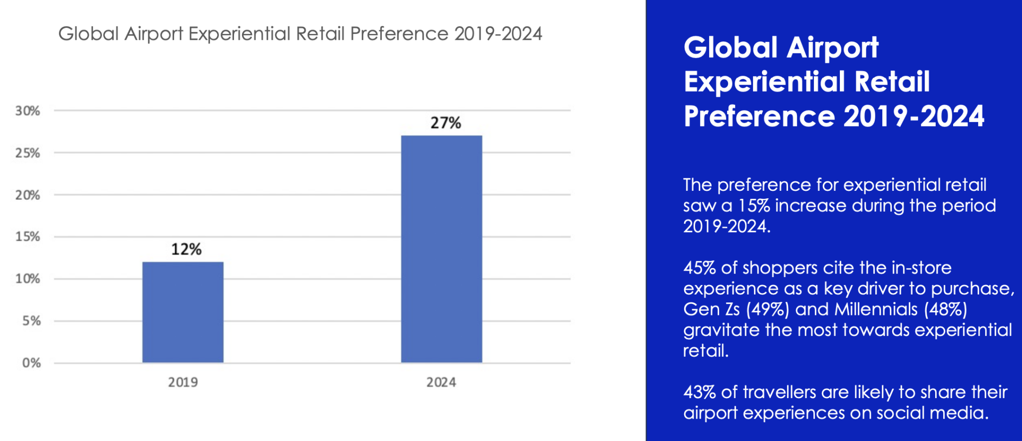 Whichever categories airport retailers focus on most towards 2030, they will all be underscored by the growing passenger expectation of more experiential retail. According to m1nd-set research, this preference has jumped from 12% in 2019 to 27% last year – more than double, and experiences are now considered more important than pricing advantage. During the same period the importance of price advantage dropped from 30% to 13% among travelling shoppers.